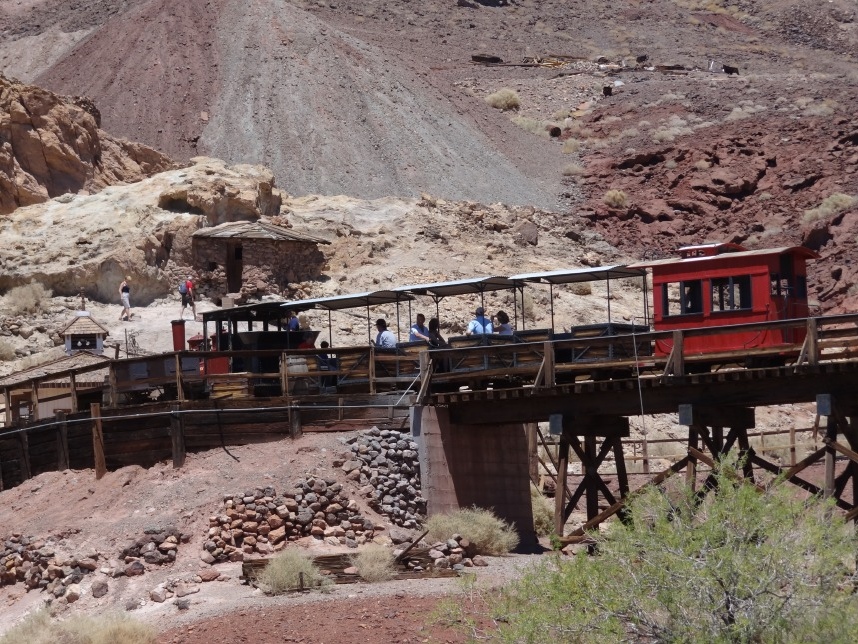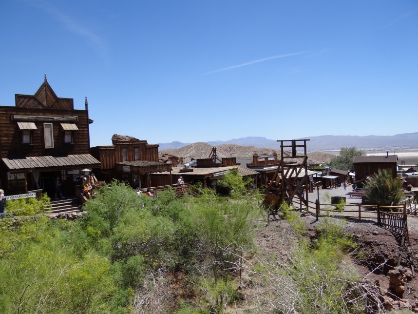 Als der Silberpreis dann drastisch in den Keller schoss, wurde Calico zur Geisterstadt und soll heute als Touristenattraktion dienen. Nun stehen wir inmitten dieser Mixtur aus erhaltenen Altgebäuden und mittelprächtigen Nachbauten, allesamt bevölkert mit überteuerten Souvenirläden oder kleinen Bistros und Shops. Das Thermometer ist in der Zwischenzeit durch die Decke geschossen und zeigt stolze 110 Grad Fahrenheit (etwa 43°C) – also rauf auf den höchsten Punkt (Aussichtsplattform ins „Nirgendwo“), eine kurze Getränkeerfrischung und zurück auf den Highway Richtung Nevada.