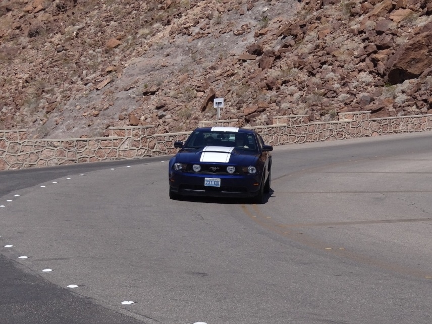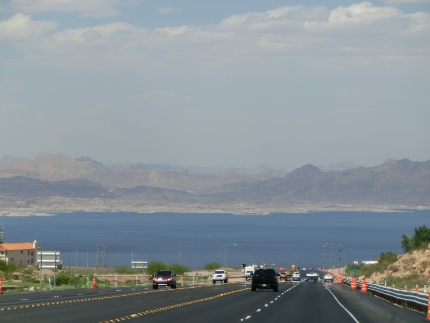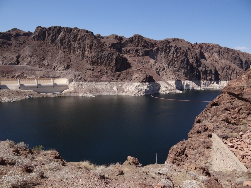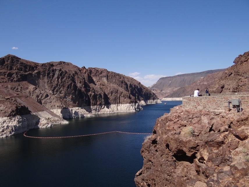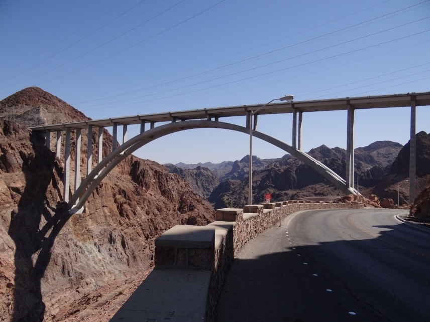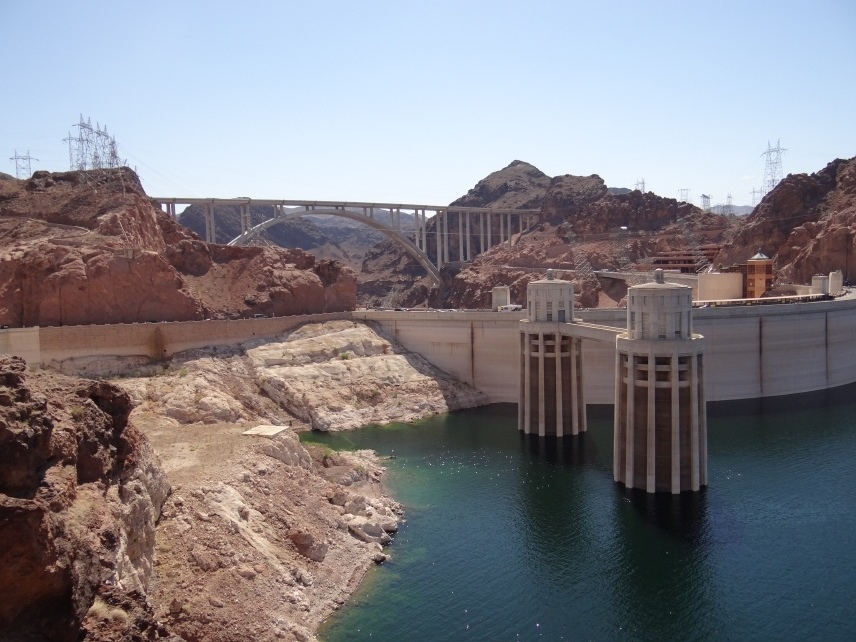 Nun geht es mit großen Schritten in Richtung „Sin City“, Las Vegas. Nach einer guten Stunde auf der US-95 N, dem sogenannten Veterans Memorial Highway, entschließen wir uns, noch einen kurzen Abstecher zum Hoover Dam zu machen. Diese gigantische Talsperre im Black Canyon staut den Colorado River zum Lake Mead auf, der hierdurch eine Fläche von 63.900 Hektar bei 170 Kilometern (!) Länge erreicht. Nicht nur das Bauwerk selbst ist beeindruckend, sondern auch seine Geschichte – schließlich verdankt Las Vegas sein ruhmreiches An- und Aussehen vor allem dem Bau der Talsperre.