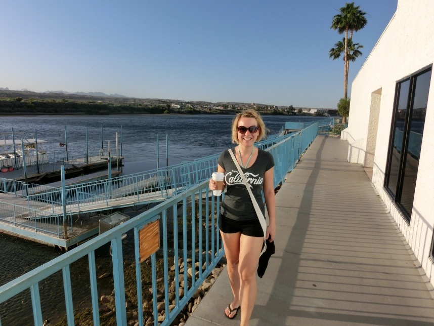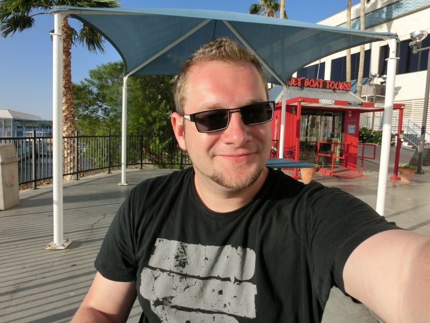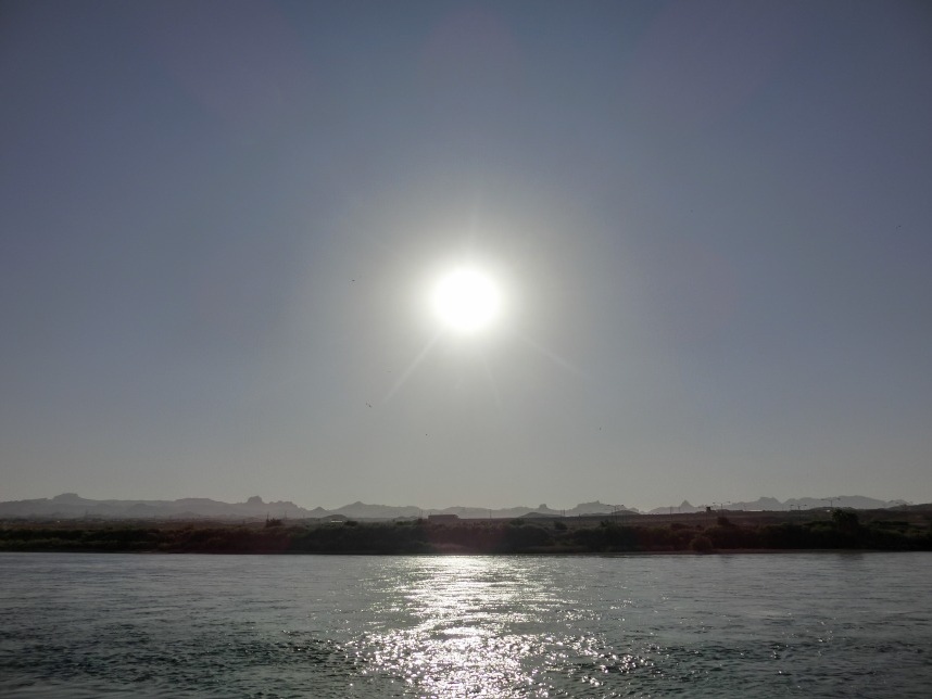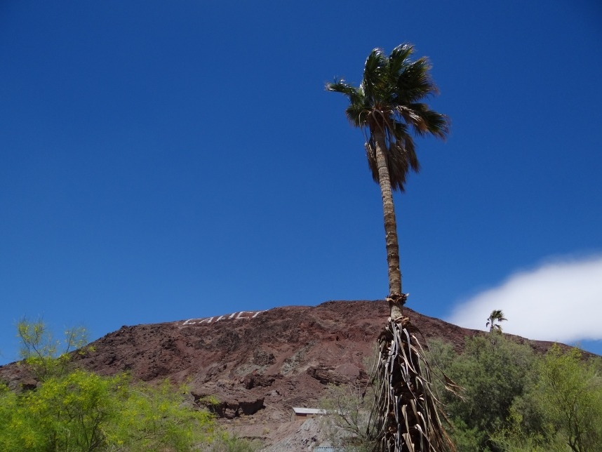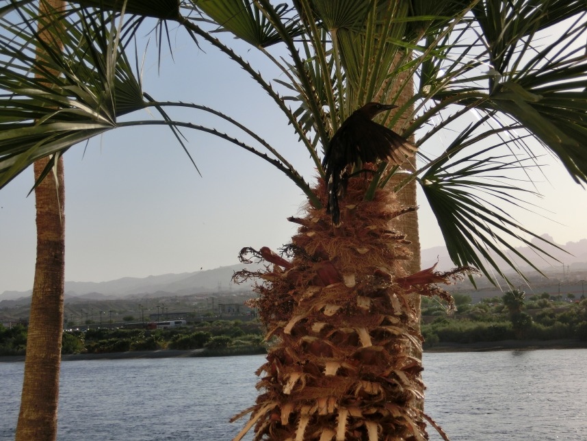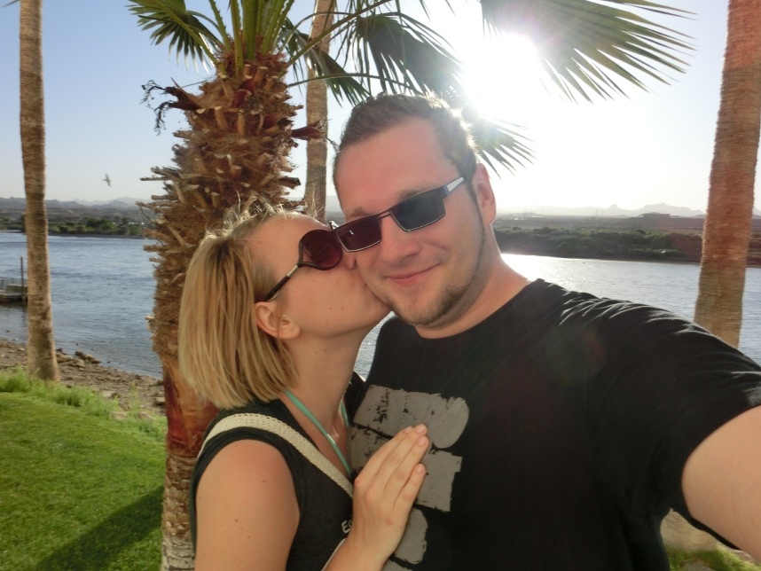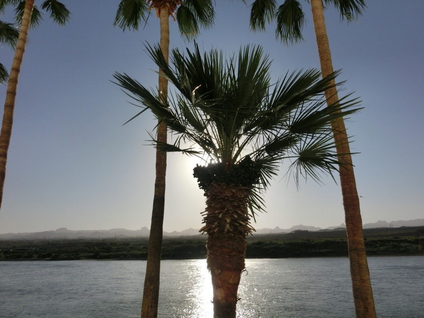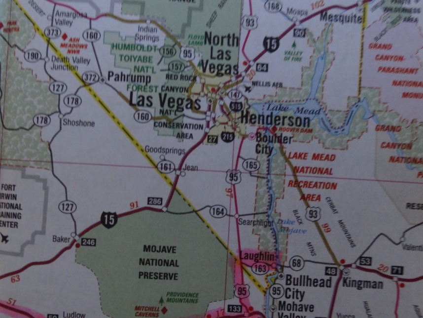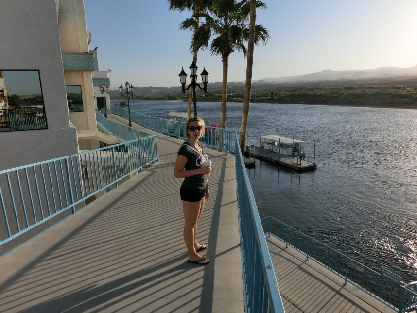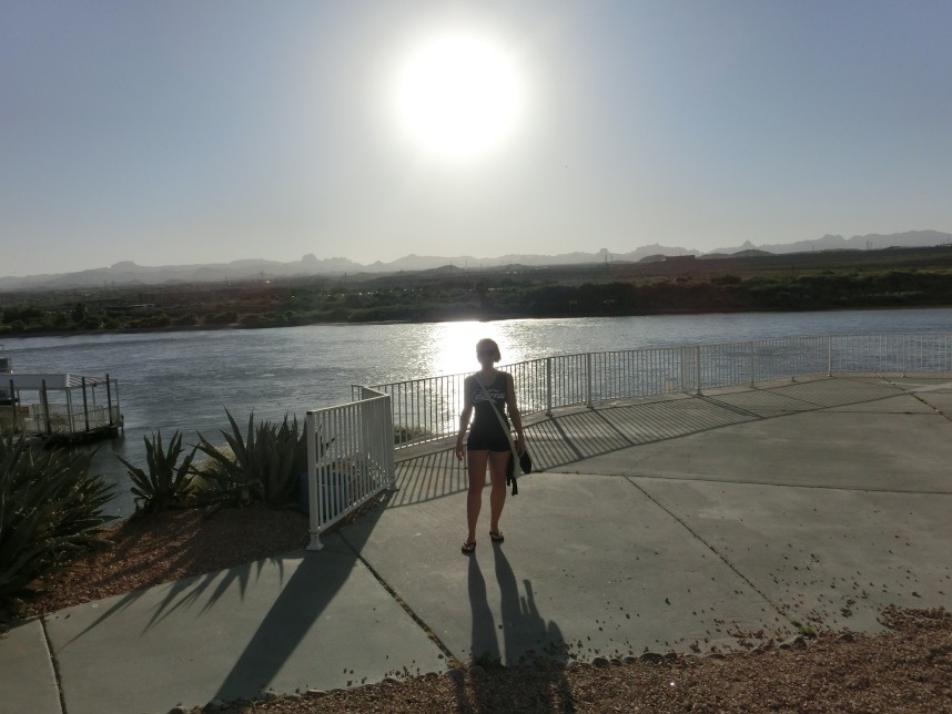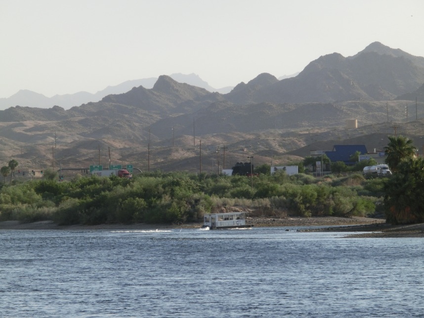 Nach weiteren 3 Stunden sind wir in Nevada, genauer gesagt überqueren wir nach wenigen Kilometern durch Bullhead City (Arizona) den Colorado River und laufen in Laughlin ein. Wer nicht zufällig schonmal in der Nähe war, dem wird Laughlin genauso wenig ein Begriff sein, wie es bei uns zunächst der Fall ist. Schon beim Schmökern durch den Lonely Planet bin ich auf eine kurzatmige aber einprägsame Beschreibung gestoßen, die Laughlin in genau einem Absatz abfrühstückt: als „Las Vegas für Arme“. Ein anderer Reiseführer sprach vom „dusty retirement village“ (also dem „staubigen Rentnerdorf“) – na, das kann ja heiter werden 😀