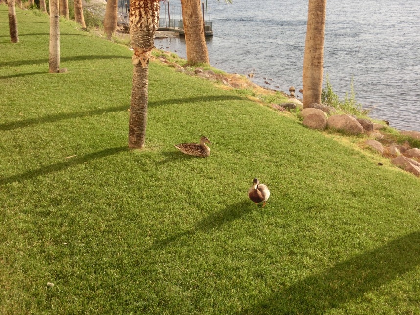 Schon vor dem Wecker sind wir gegen 6:30 Uhr von der Sonne sanft wachgeküsst worden und nutzen die unchristliche Uhrzeit für einen Spaziergang (mit Kaffee) entlang des Flusses. Die Hotels am Wasser sind alle mit Walkways verbunden und haben zahlreiche Bänke am palmenbewachsenen Ufer – wirklich eine tolle Atmosphäre bei frühmorgendlichen 30 Grad im Schatten!
